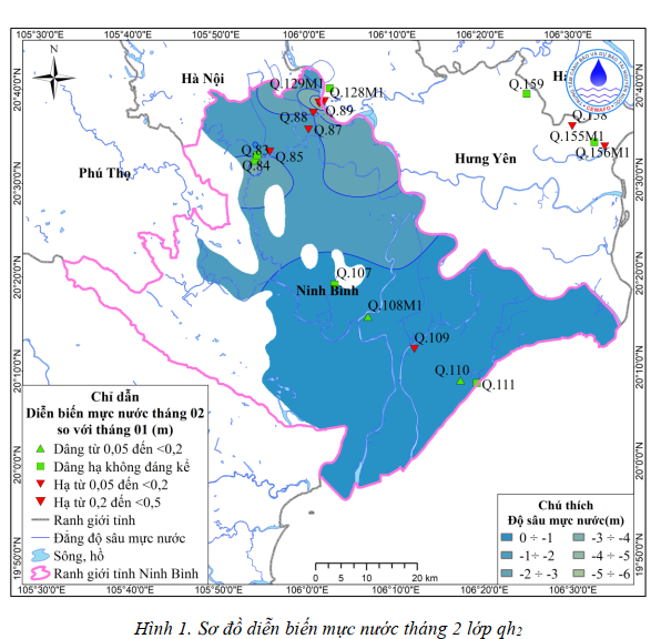 Diễn biến mực nước dưới đất trung bình tháng 2 so với tháng 1 có xu thế hạ, có 11/13 công trình mực nước hạ, 1/13 công trình mực nước dâng hạ không đáng kể và 1/13 công trình mực nước dâng. Giá trị hạ thấp nhất là 0,25m tại xã Xuân Hòa (QT4a-TH) và giá trị dâng là 0,12m tại xã Yên Trường (QT1a-TH).
