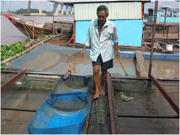 Là một trong những hình thức chăn nuôi phổ biến nhất của người dân vùng sông nước đồng bằng, nghề nuôi cá bè trên những con sông lớn, những khu kênh rạch nhỏ của người dân miền Tây đã có từ hàng trăm năm nay. Theo đó, người dân dựa vào nguồn nước tự nhiên vô cùng phong phú nơi đây để chăn nuôi những loài thủy hải sản. Hiện nay, khi mà nguồn lợi tự nhiên từ hầu hết các loại thủy hải sản như tôm cá, cua ốc… trong tự nhiên đều đã cạn kiệt thì ngành chăn nuôi những loài này đang ngày càng phát triển và nở rộ hơn bao giờ hết. Cụ thể, theo thống kê của Bộ nông nghiệp và phát triển nông, ngành nuôi trồng thủy sản ở khu vực Đồng bằng sông Cửu Long thời gian qua đã có những bước phát triển vượt bậc về diện tích và sản lượng nuôi trồng với quy mô lớn. Cụ thể, năm 2012, sản lượng thủy sản của cả vùng ước đạt hơn 2,2 triệu tấn, trong đó cá nuôi là 1,7 triệu tấn và tôm là gần 400 nghìn tấn... Ngoài ra, cũng cần có một so sánh khác là tổng sản lượng thủy sản nuôi trồng của Đông bằng sông Cửu Long chiếm khoảng 70,94% tổng sản lượng nuôi trồng thủy sản trong cả nước, với mức tăng trưởng hằng năm là 17,8%. Trong số đó, dù chưa có thống kê chính xác về việc nuôi trồng thủy sản trong ao hồ và ngoài lồng bè là bao nhiêu nhưng có thể dễ dàng nhận thấy, tỷ lệ chăn nuôi ở lồng bè là rất lớn, do diện tích mặt nước tự nhiên ở khu vực này vô cùng rộng lớn. Có thể nhận thấy ngay rằng, việc chăn nuôi thủy sản lồng bè đã đem lại rất nhiều lợi ích, mặt tích cực cho người dân. Tuy nhiên, mặt trái của nó là sự ô nhiễm môi trường do mất cân bằng sinh thái, do tác động quá lớn của con người vào dòng chảy tự nhiên cũng như lượng hóa chất, thuốc chữa bệnh, thức ăn chăn nuôi khổng lồ thải ra đã có những tác động tiêu cực tới hệ sinh thái, tới những loài động thực vật khác sinh sống ở trên sông.