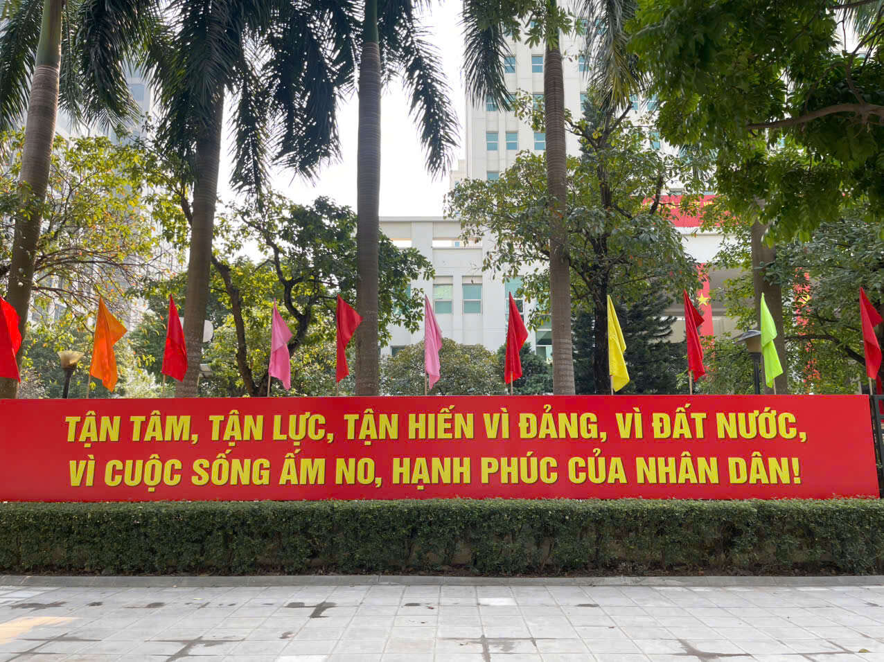 Song song với tuyên truyền trên báo chí và môi trường số, Đảng ủy Bộ Nông nghiệp và Môi trường yêu cầu các cấp ủy, tổ chức đảng trực thuộc tăng cường tổ chức tốt công tác tuyên truyền, cổ động trực quan tại cơ quan, đơn vị. Theo đó, khẩn trương triển khai trang trí pa nô, áp phích, băng rôn, bảng điện tử, màn hình LED tại trụ sở làm việc của các cơ quan, đơn vị, doanh nghiệp, nhất là tại các khu vực tập trung đông người; lựa chọn khẩu hiệu tuyên truyền đúng định hướng, đồng thời rà soát, tháo gỡ kịp thời những khẩu hiệu không còn phù hợp; tổ chức treo cờ Đảng, cờ Tổ quốc, cờ phướn và đẩy mạnh chỉnh trang trụ sở cơ quan theo hướng xanh, sạch, đẹp.