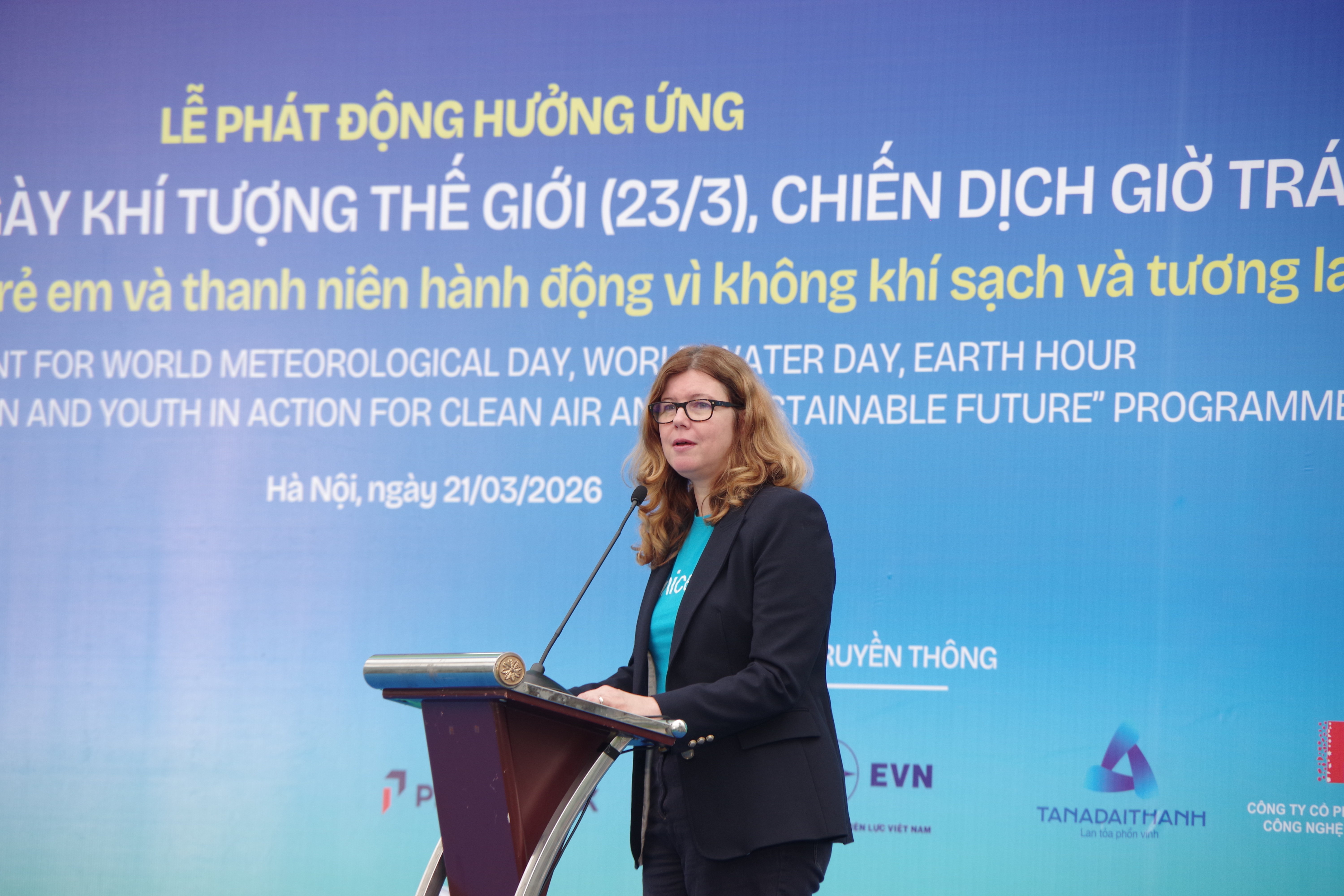 Bà Silvia Danailov, Trưởng Đại diện UNICEF tại Việt Nam phát biểu tại Lễ phát động hưởng ứng Ngày Khí tượng Thế giới, Ngày Nước Thế giới, Chiến dịch Giờ Trái đất 2026Theo bà Silvia Danailov, các vấn đề về nước, khí hậu và môi trường không chỉ là câu chuyện của hiện tại, mà còn là trách nhiệm đối với thế hệ tương lai. Dẫn lại thông điệp của Thứ trưởng Bộ Nông nghiệp và Môi trường Lê Công Thành: “Chúng ta không thừa kế Trái đất từ tổ tiên, chúng ta mượn nó từ chính con cháu mình”, đại diện UNICEF cho rằng điều này đồng nghĩa với việc bảo vệ môi trường cũng chính là bảo vệ tương lai của mọi trẻ em.