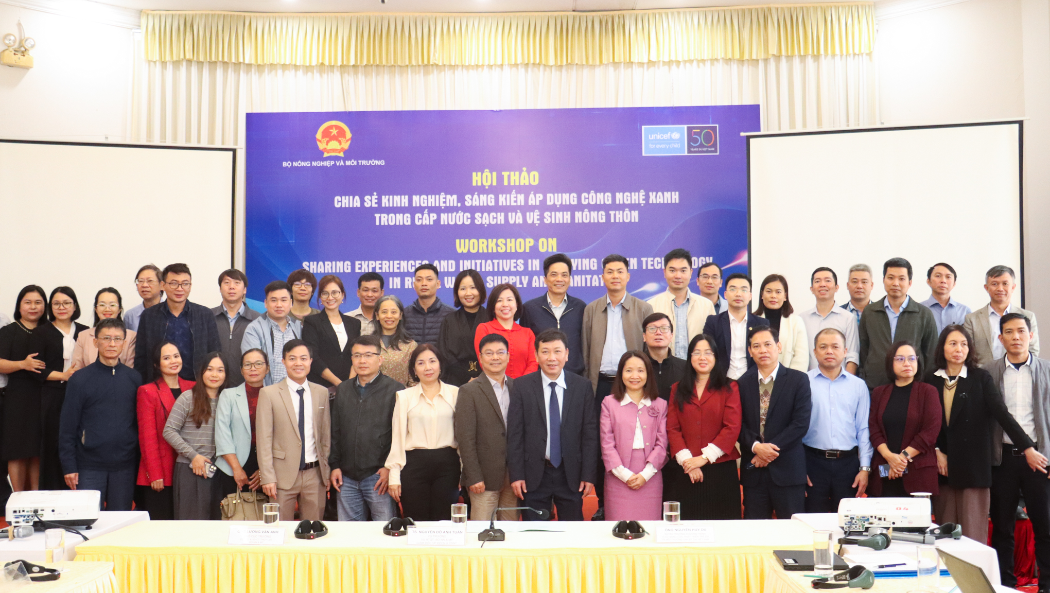 Các đại biểu chụp ảnh lưu niệm tại Hội thảoTại hội thảo, các đại biểu cũng tập trung chia sẻ 4 nhóm giải pháp tiêu biểu áp dụng công nghệ xanh trong cấp nước sạch và vệ sinh nông thôn đang được nhiều địa phương quan tâm như: ứng dụng năng lượng tái tạo và thiết bị tiết kiệm năng lượng trong cấp nước nông thôn; công nghệ xử lý nước nhiễm phèn, nhiễm mặn và các dạng ô nhiễm đặc thù tại những vùng chịu tác động mạnh của khí hậu; giải pháp số hóa để giám sát mạng lưới, giảm thất thoát nước và nâng cao hiệu quả dịch vụ; cùng các mô hình vệ sinh nông thôn thích ứng khí hậu, quản lý chất thải theo hướng kinh tế tuần hoàn. Bên cạnh đó, hội thảo cũng ghi nhận nhiều ý kiến đóng góp chính sách từ viện nghiên cứu, chuyên gia, doanh nghiệp và các tổ chức phát triển.