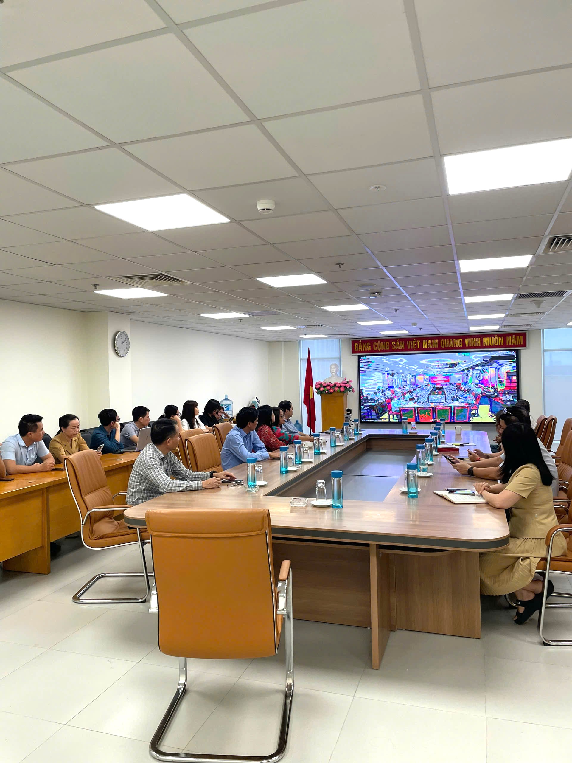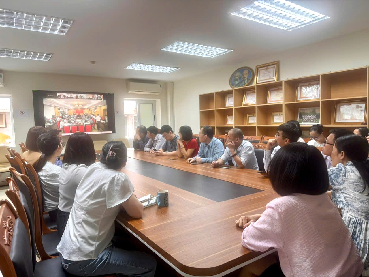 Quang cảnh Hội nghị trực tuyến tại điểm cầu Đảng ủy Cục Quản lý tài nguyên nước