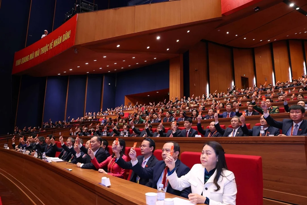 Đại biểu dự Đại hội Đảng XIV, ngày 22/1. Ảnh: TTXVN