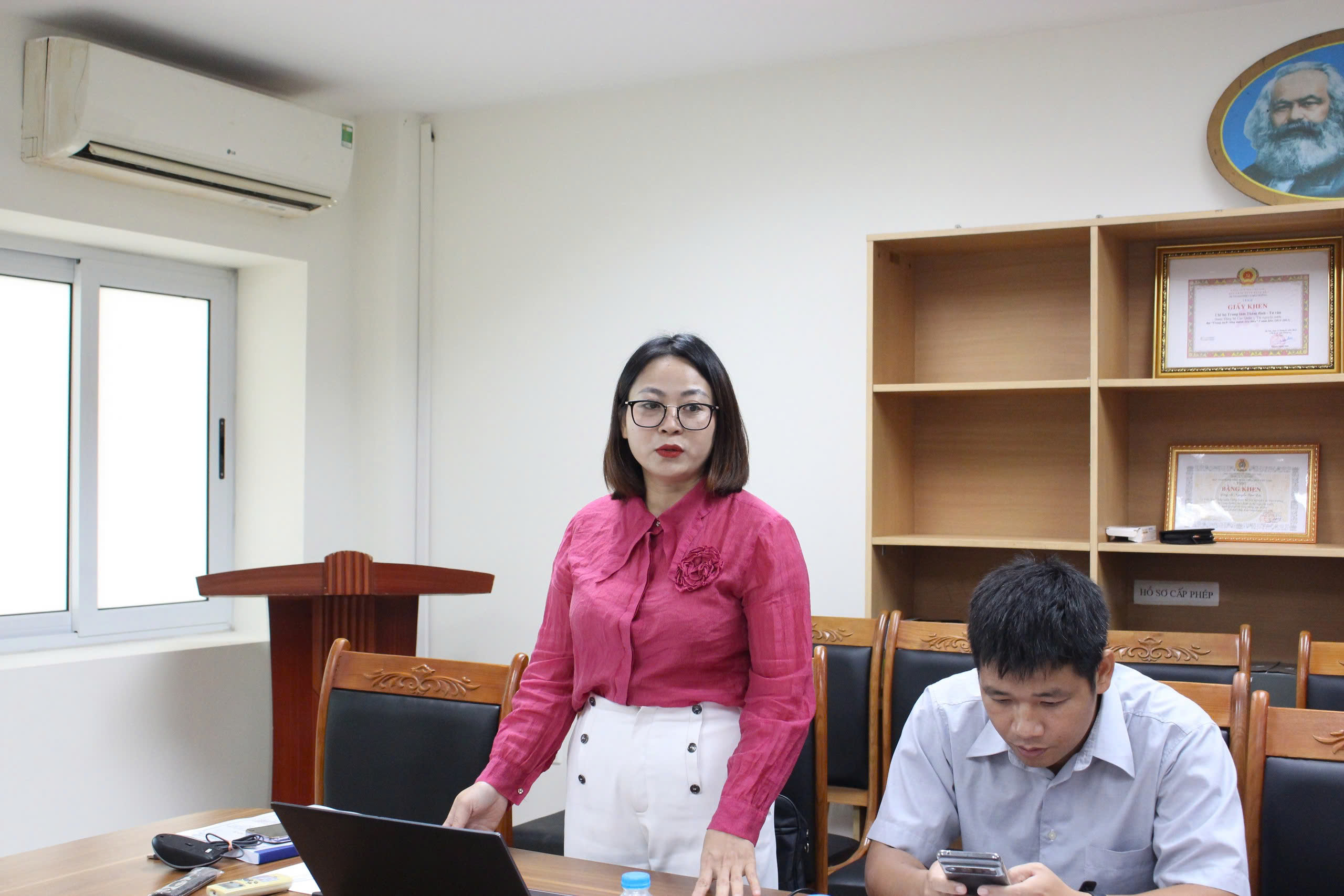 Bà Tống Thị Liên, Phó trưởng Phòng Thông tin và Lưu trữ tài nguyên nước trình bày dự thảo quy định về mô hình, cấu trúc, nội dung cơ sở dữ liệu; về thu thập, thu nhận, quản lý, lưu trữ, kết nối, chia sẻ, khai thác và bảo đảm an toàn, bảo mật thông tin, dữ liệu lĩnh vực tài nguyên nướcCụ thể, Chương I. Quy định chung; Chương II. Kiến trúc mô hình, nội dung, cấu trúc cơ sở dữ liệu; Chương III. Thu thập, thu nhận, quản lý, lưu trữ dữ liệu ; Chương IV. Kết nối, chia sẻ, khai thác sử dụng thông tin, dữ liệu lĩnh vực tài nguyên nước; Chương V. Bảo đảm bảo mật, an toàn, an ninh thông tin, dữ liệu lĩnh vực tài nguyên nước.