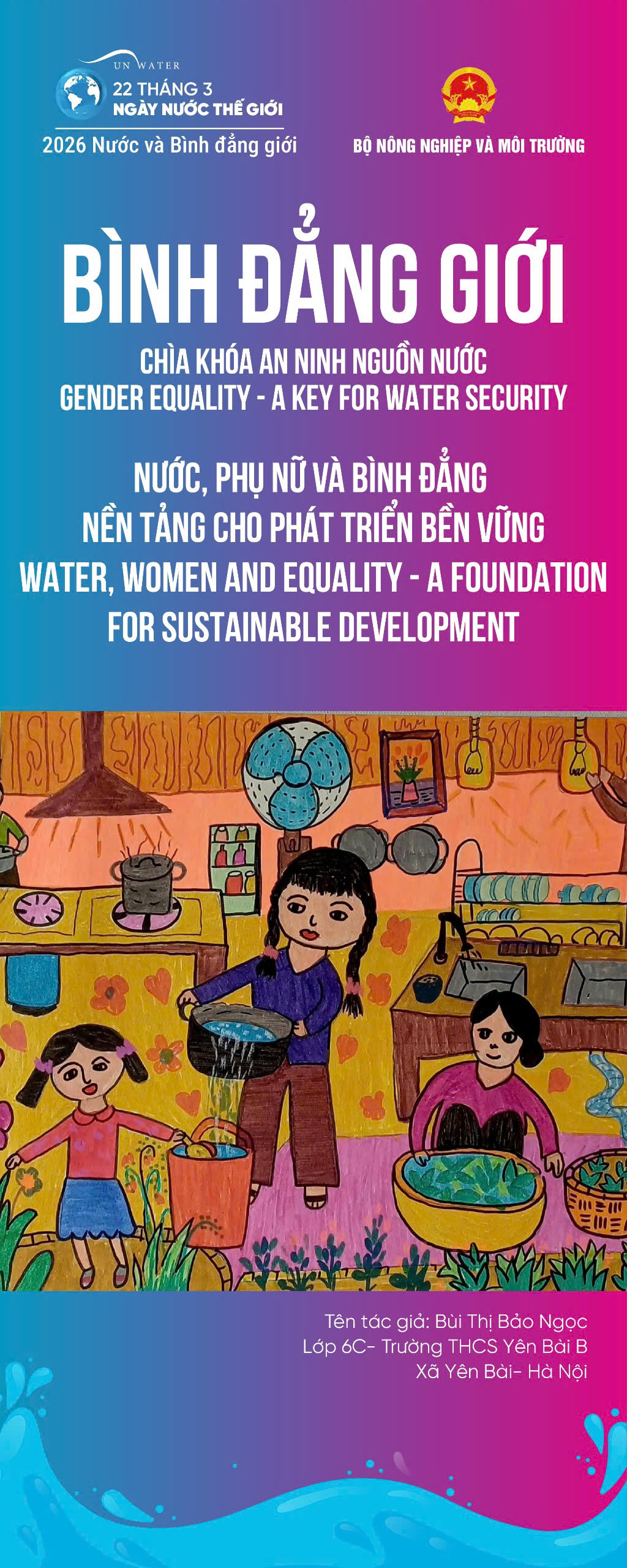 Ngày Nước thế giới 22 tháng 3 năm 2026 được Liên hợp quốc phát động ̣với chủ đề “Water and Gender” - “Nước và Bình đẳng giới” nhấn mạnh mối liên hệ chặt chẽ giữa nước, vệ sinh an toàn và bình đẳng giới trong nỗ lực thúc đẩy phát triển bền vững và bảo đảm quyền con người.